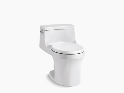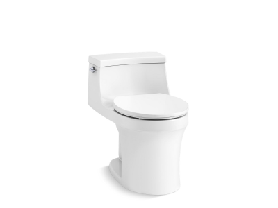 With sleek curves and a low-profile silhouette, the KOHLER® San Souci one-piece toilet makes a strong design statement. A compact tank curves seamlessly into a round-front bowl for a space-saving profile. A 1.28-gallon flush provides significant water savings of up to 16,500 gallons per year, compared to a 3.5-gallon one-piece round-front toilet, without sacrificing performance. This toilet comes with a soft-close seat featuring innovative technology that prevents the seat from slamming and simplifies both cleaning and installation.
