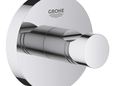 GROHE, 40364001, 40364001 Robe Hook, Round, Essentials Collection, 1 Hooks, 1-3/4 in Overall Depth, 2-1/8 in Overall Height, Wall Mounting, Metal, StarLight® Polished Chrome, Import