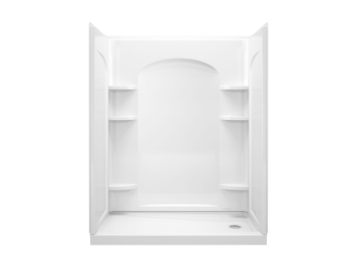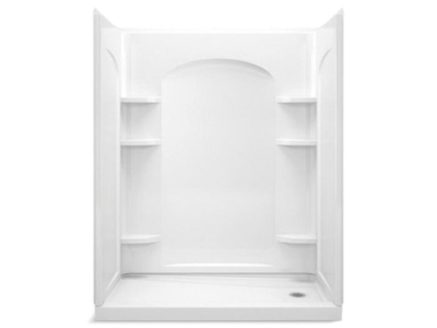 Sterling® 72180126-0 3-Piece Drain Shower, Ensemble®, 60 in L x 32 in W x 75-3/4 in H, Solid Vikrell®, White