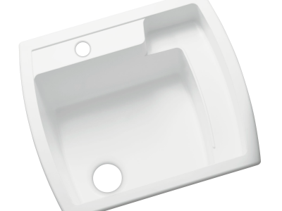Made of solid Vikrell® material, the durable, easy to install latitude utility sink offers subtle, contemporary style. The unique quarter-deck design provides shelf space for storage and cleaning and adds to the overall modern appeal.
