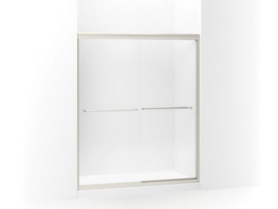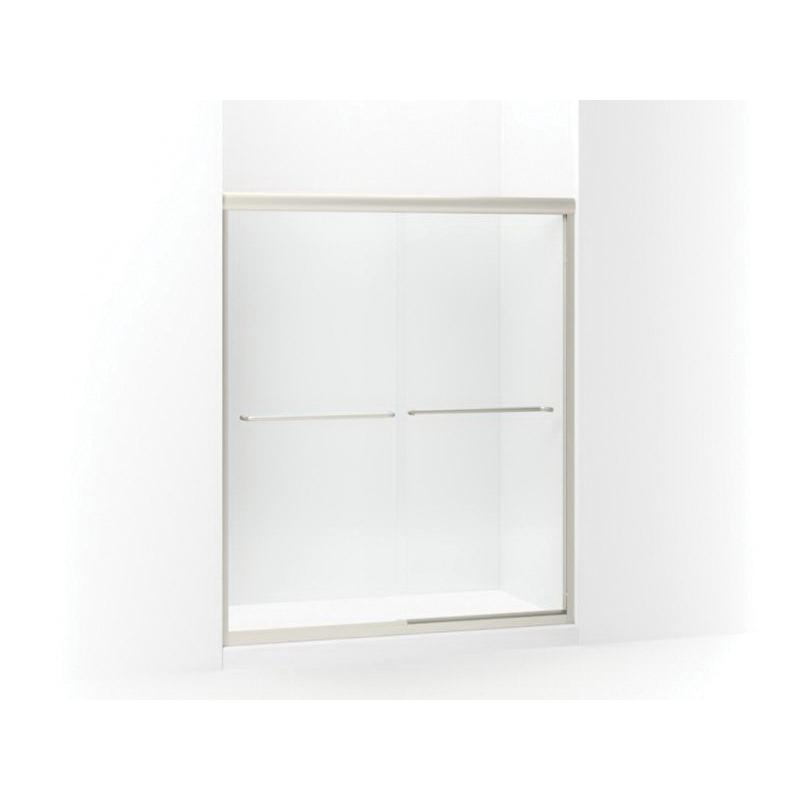 Sterling® Sliding Shower Door, Series: 5400, Finesse®, 54-5/8 to 59-5/8 in Opening Width, 65-13/16 in Opening Height, Frameless, Tempered Glass, 1/4 in Glass Thickness, 70-1/16 in Overall Height, 59-5/8 in Overall Width, 22-3/4 to 27-3/4 in Walk Through, Knob Handle, Aluminum, Nickel with Smooth/Clear Glass Texture