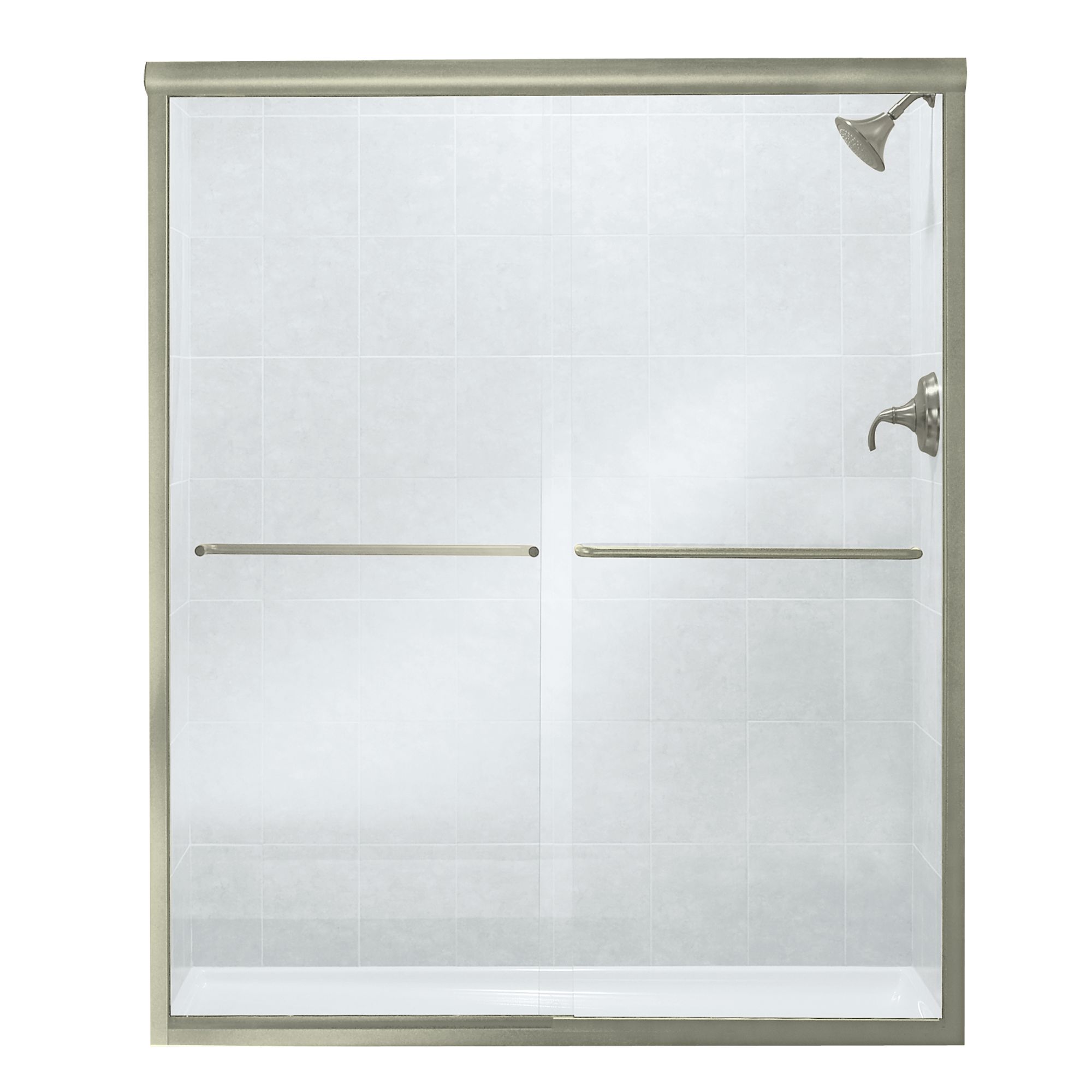 Sterling® 5475-59N-G05 5400 Sliding Shower Door With CleanCoat® Technology, Finesse®, Frameless Frame, Tempered Glass, Nickel with Smooth/Clear Glass Texture, 1/4 in THK Glass, 65-13/16 in H Opening, 54-5/8 to 59-5/8 in W Opening