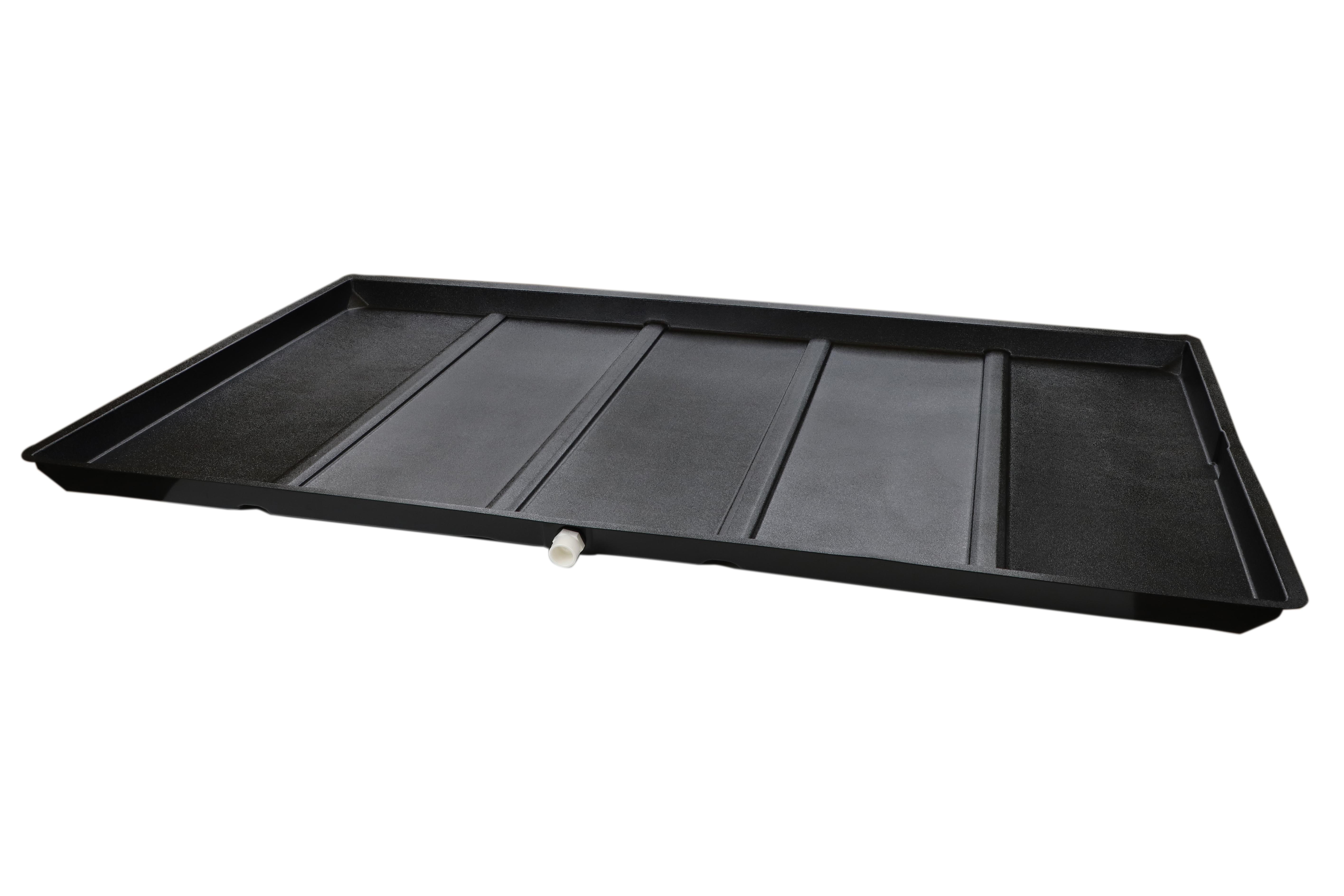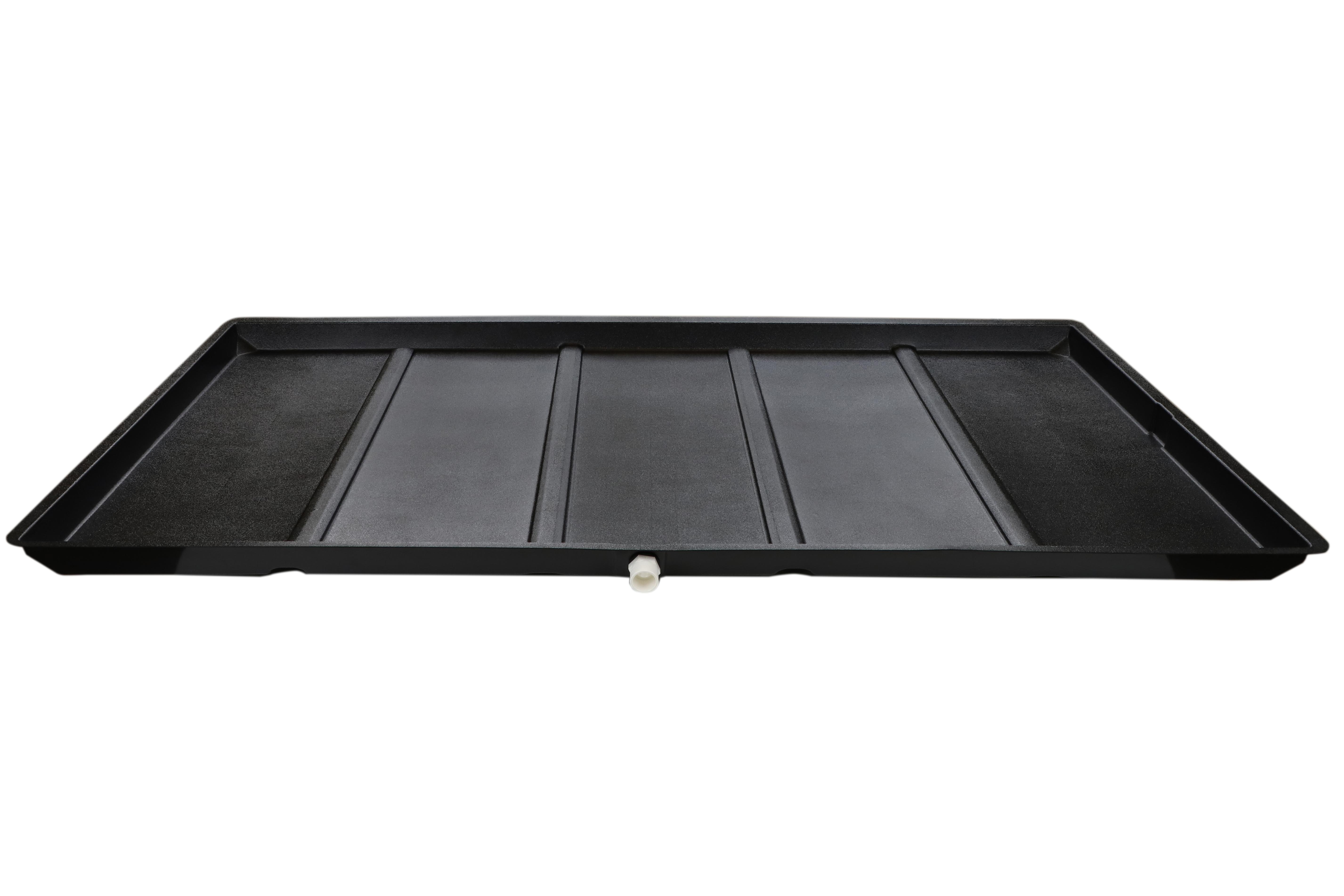 6-3660L Plastic Drain Pan, 36 in x 60 in 5 pack is used to collect condensate from cooling and evaporator coils in locations where damage to any building component could occur as a result of overflow. Drain line outlet on pan's long side. Includes 3/4 in fittings. Fully nestable for easy storage.