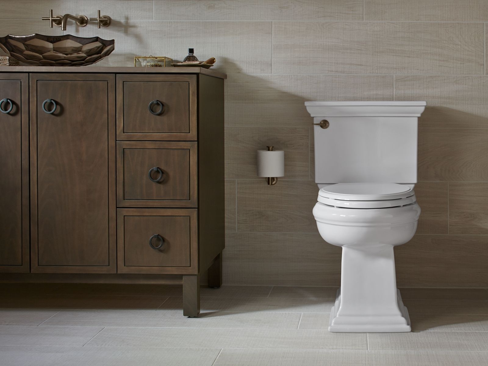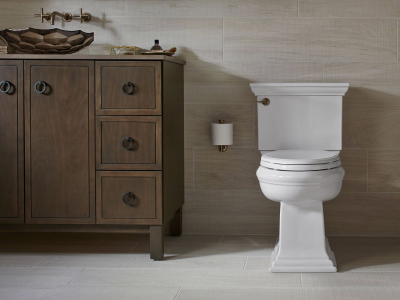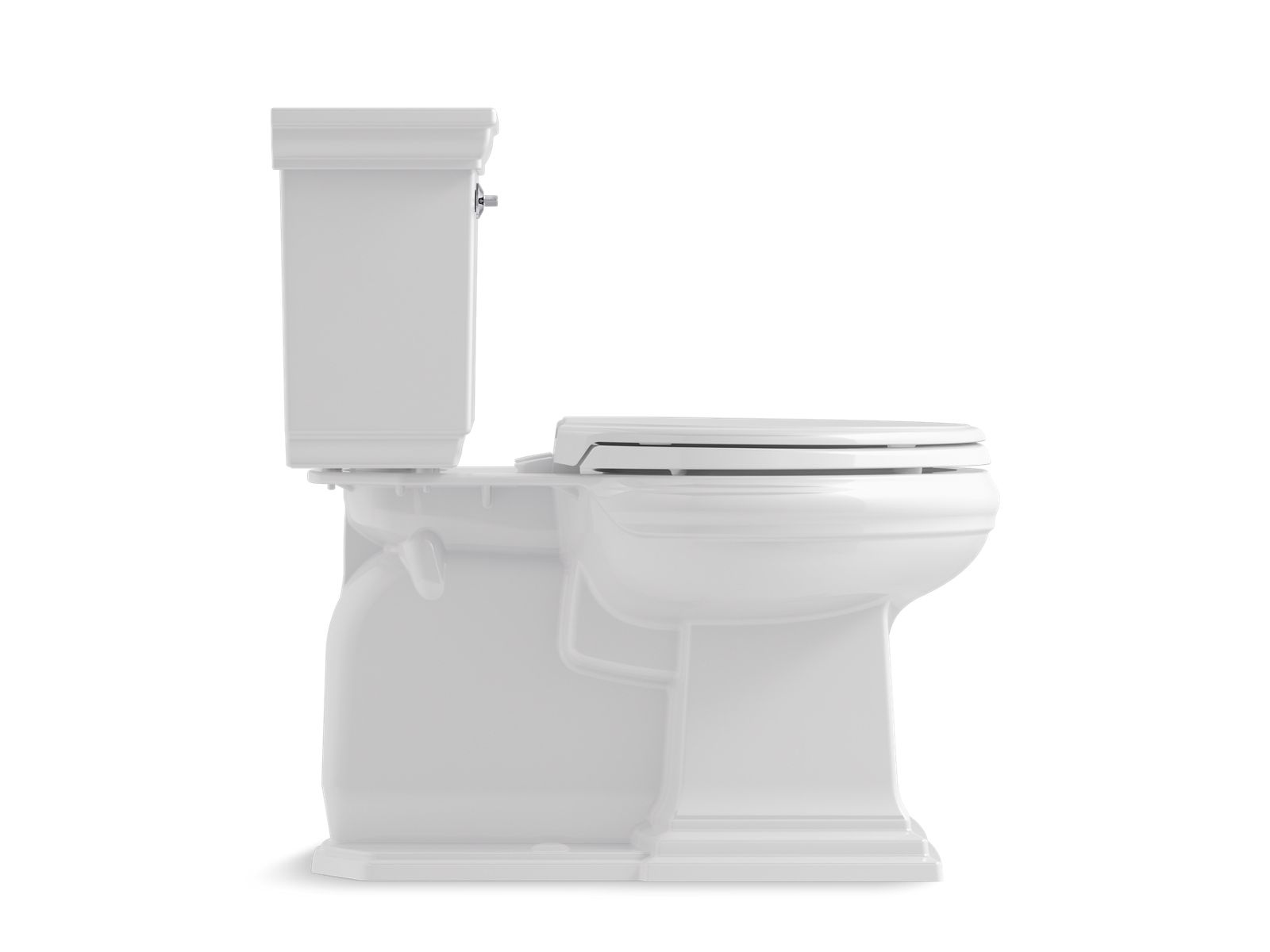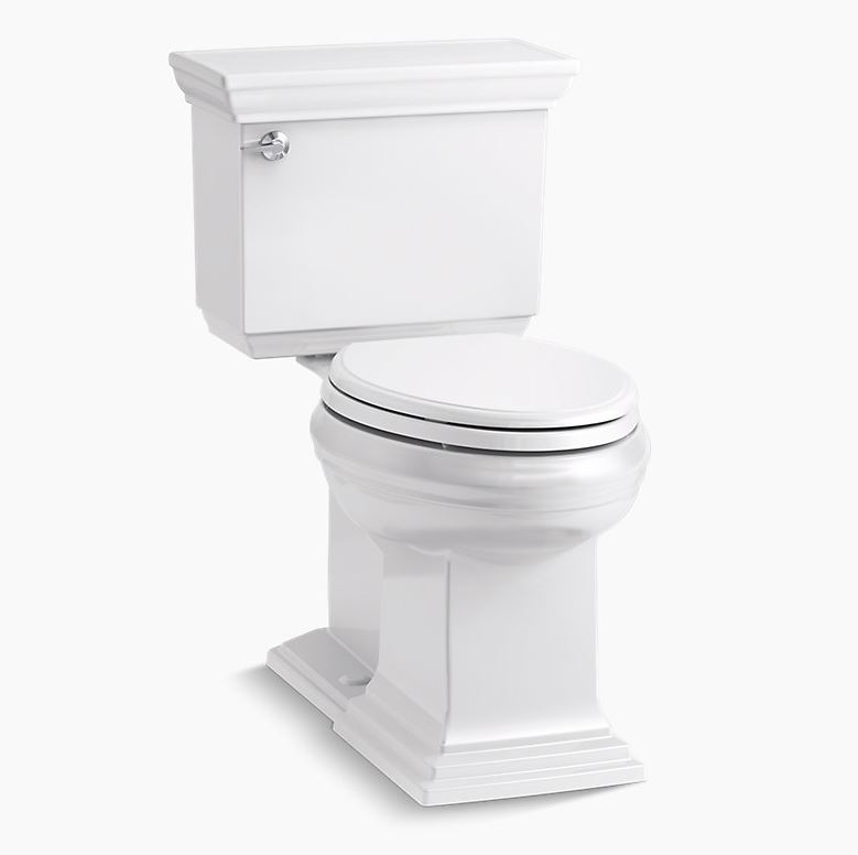 Featuring the elegant architectural Memoirs Stately look of the KOHLER® Memoirs collection with Stately design, this two-piece elongated toilet combines water-saving flush performance with traditional style. A high-efficiency 1.28-gallon flush offers up to 16,500 gallons of water savings per year, compared to a 3.5-gallon toilet, without compromising performance. The elongated bowl is positioned at a convenient height for comfort and ease of use. A concealed trapway simplifies cleaning.