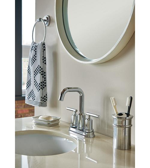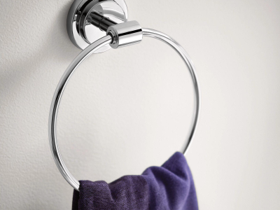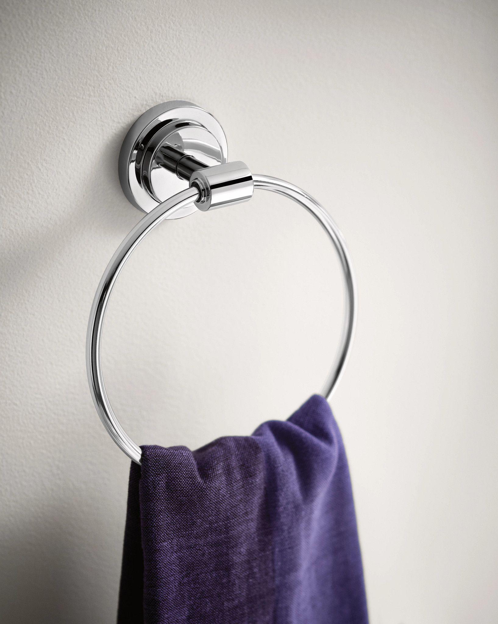 Keep hand towels handy with the MOEN Iso Towel Ring in Chrome. This towel ring can hold up to 22 lb. and is great for keeping decorative towels on display. The Iso Collection's telescoping machined-metal design infuses industrial elements into European minimalism as it boldly, and beautifully, embraces the future. Its close proximity to the sink and faucet makes it an important visual element in the bath.