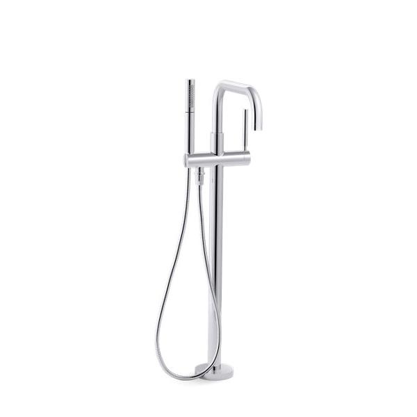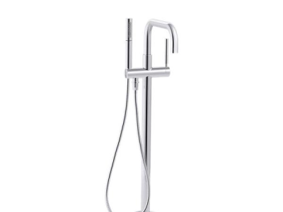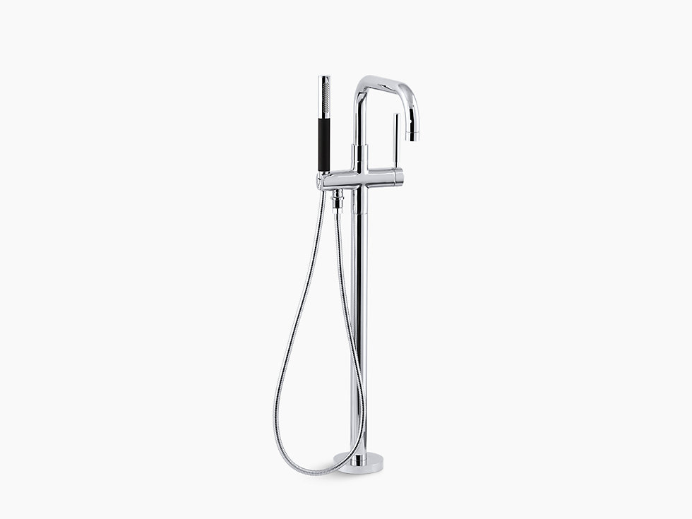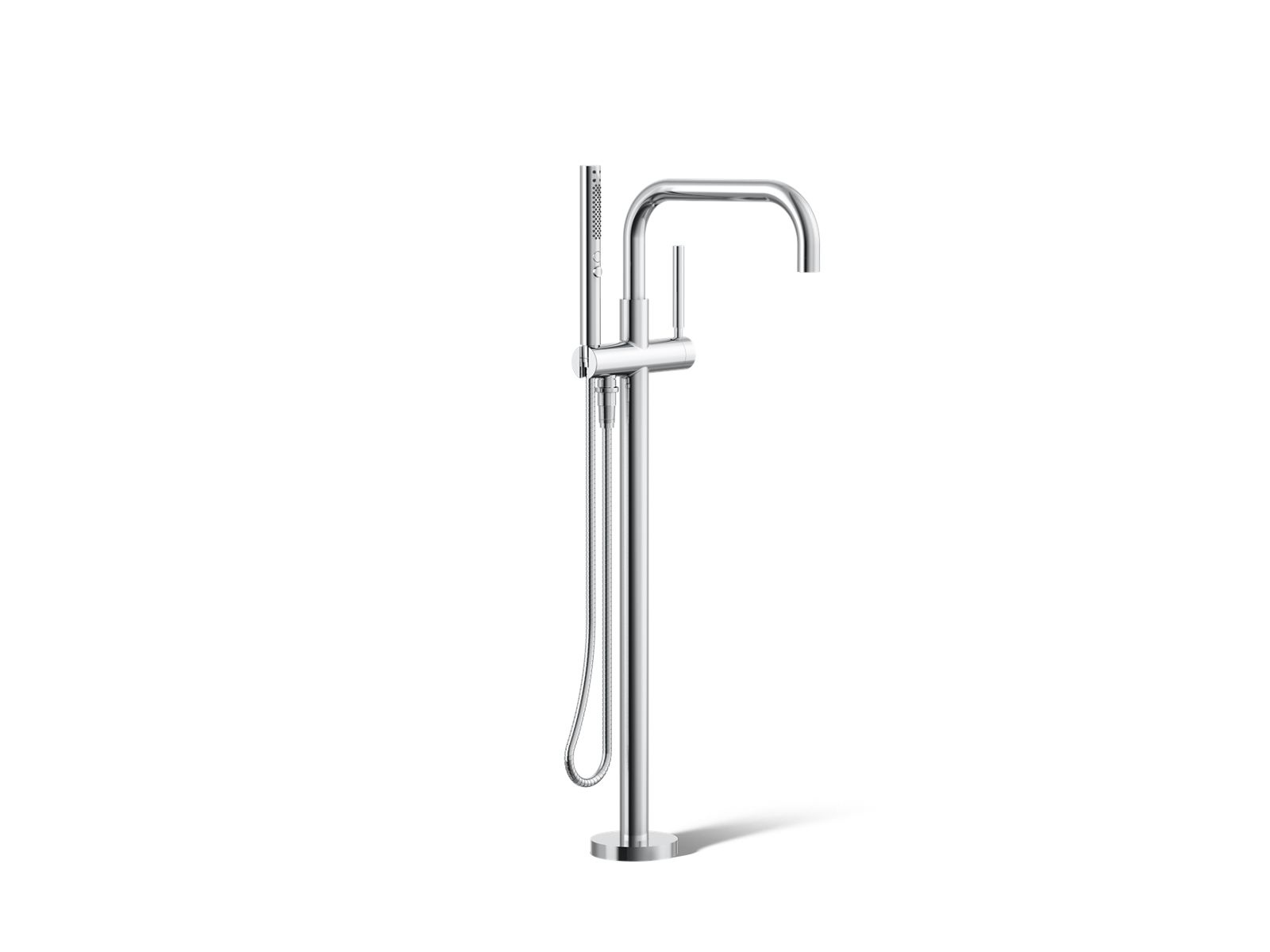KOHLER® Purist bathroom faucets and accessories combine simple, architectural forms with sensual design lines. Featuring this modern, minimalist style, the Purist floor-mount bath filler trim complements a wide variety of freestanding baths. This freestanding bathtub faucet with handshower brings sophistication to your bathroom with a defined profile and sleek, integrated handshower.