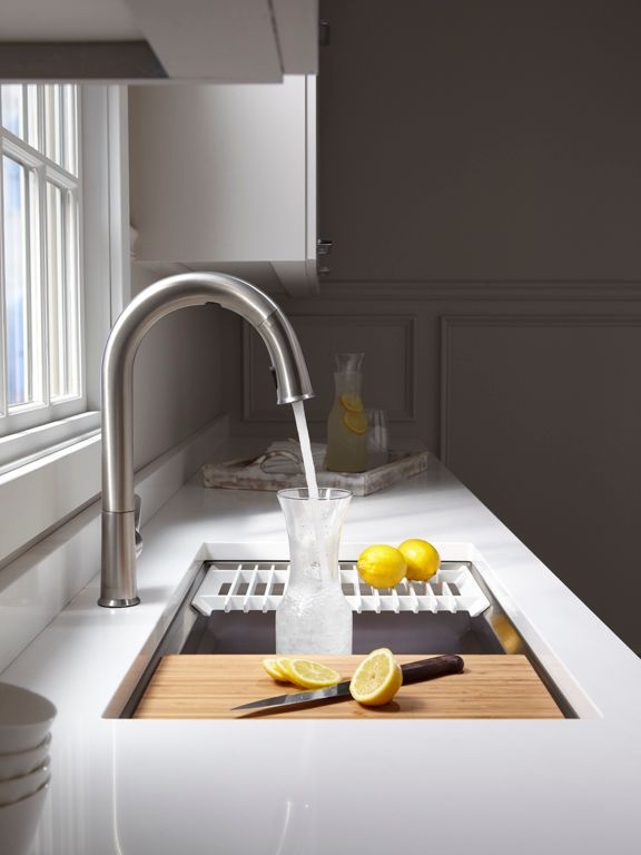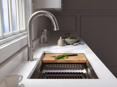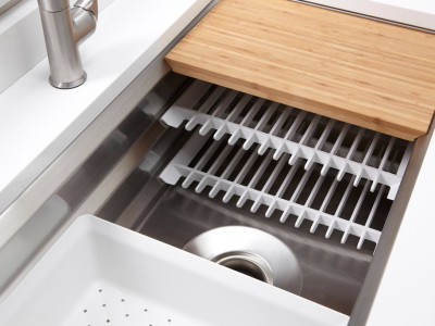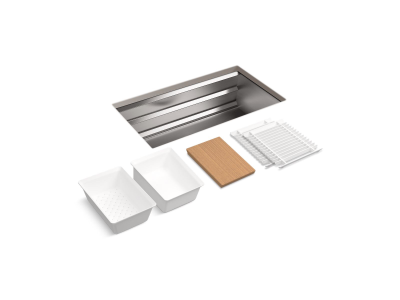 Create a highly functional kitchen workstation with the KOHLER® Prolific sink and its included accessories. This innovative stainless-steel undermount kitchen sink features three graduated ledges in the basin, so you can place the bamboo cutting board, multipurpose grated racks (two), colander, and wash bin exactly where you want them for maximum efficiency as you work. The sink comes with all five accessories included. Other features include a unique cone-shaped drain for easier cleanup and SilentShield sound absorption for less noise.