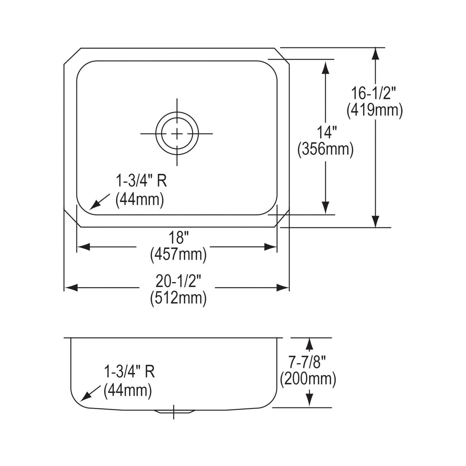 Elkay®, ELUH1814, Kitchen Sink, Lustertone™ Classic Collection, 18 in Bowl Length, 14 in Bowl Width, 7-7/8 in Bowl Depth, 3-1/2 in Drain Opening, 1 Bowls, 20-1/2 in L x 16-1/2 in W x 7-7/8 in H Overall, Undermount Mounting, 18 ga 304 Stainless Steel, Domestic