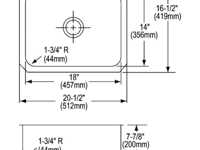 Elkay® ELUH1814 Lustertone™ Classic Kitchen Sink, 18 in L x 14 in W Bowl x 7-7/8 in D Bowl, 20-1/2 in L x 16-1/2 in W x 7-7/8 in H, Undermount Mounting, 18 ga 304 Stainless Steel