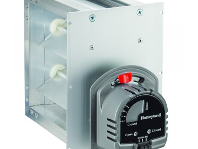 Power close and spring open damper - 24 volt motor used to control circulating air in HVAC systems and used when a normally open damper is required.