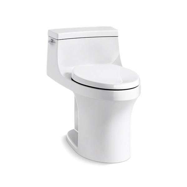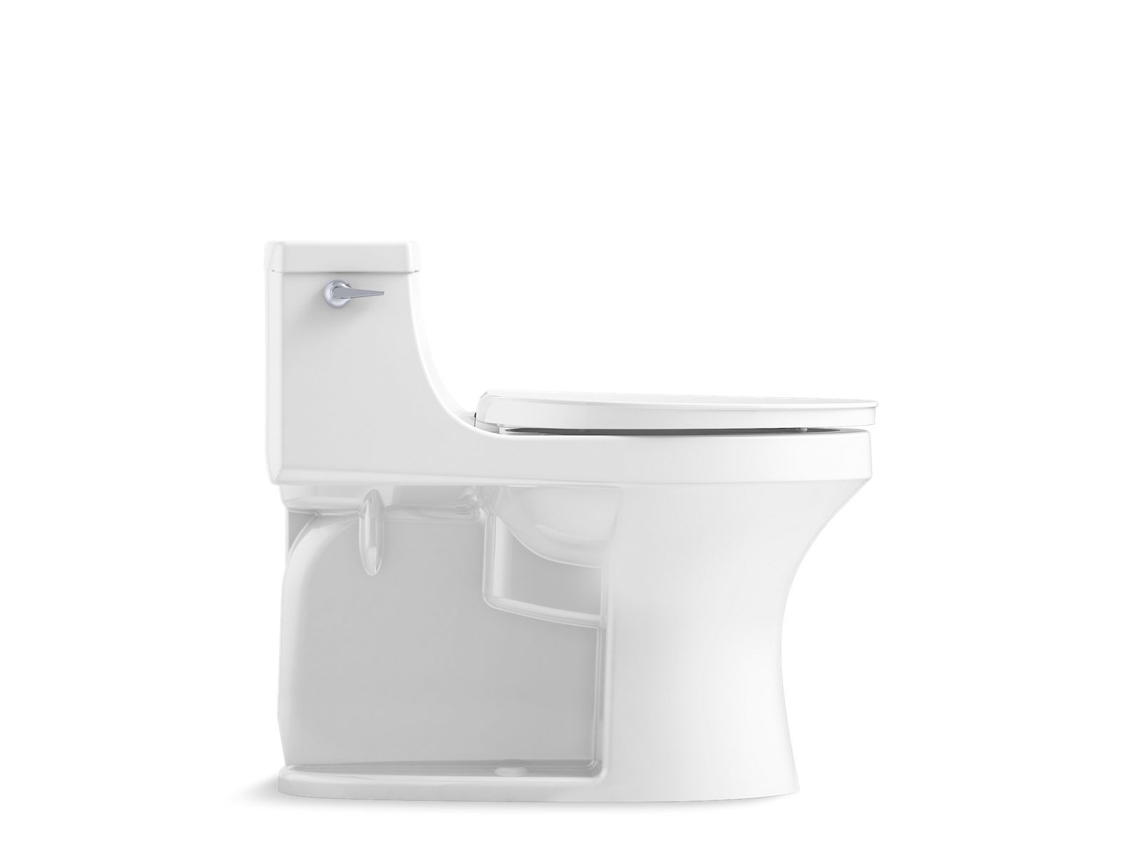 Kohler® 5172-0 Comfort Height® 1-Piece Toilet With Left-Hand Trip Lever, San Souci®, Compact Elongated Bowl, 16-1/2 in H Rim, 12 in Rough-In, 1.28 gpf, White