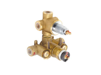 - Rough-In with Integrated 3 Way Diverter with share function ports 1 and 2, and Shut Off Control.