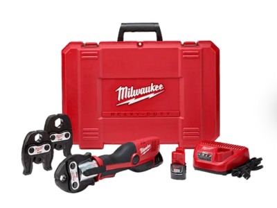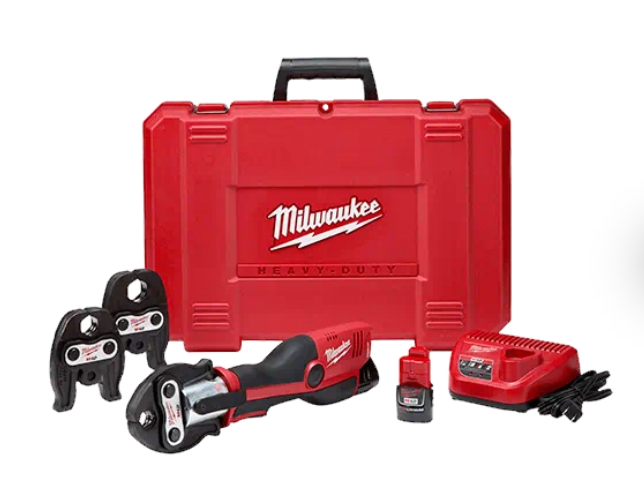 The Milwaukee M12 FORCE LOGIC Press Tool Kit with Jaws is the lightest press tool on the market and represents a new level in portability and accessibility around installed pipe. The M12 press tool features a one handed, in line design enabling you to operate the tool nearly anywhere you can fit your arm. Built in REDLINK technology enables the plumbing press tool to monitor the force output, delivering quality connections. A visual indicator alerts you when a secure connection has been achieved and when the tool needs calibration. The cordless press tool features the best calibration standards, only requiring service every 32,000 crimps. This allows you to perform up to 4 times more connections between services, keeping the tool on the job site up to 4 times longer than competitive units. When used with our MILWAUKEE press jaws, this tool delivers quality press connections on all major fitting brands. The Milwaukee FORCE LOGIC press tool is powered by Milwaukee M12 REDLITHIUM batteries, allowing you to cut, fasten and connect on one system.