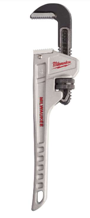 Milwaukee Aluminum Pipe Wrench has been designed from the ground up to offer maximum productivity to the professional user. The Aluminum Pipe Wrench features an overbite jaw design offering the largest gripping surface. Dual coil springs offer maximum durability and tool life, and the ergonomic handle form has been designed for maximum comfort and won't dig into the palms. Through hardened jaws deliver increased grip and tooth durability, and a tether ready handle loop makes the Milwaukee pipe wrench perfect for the toughest of jobsites.