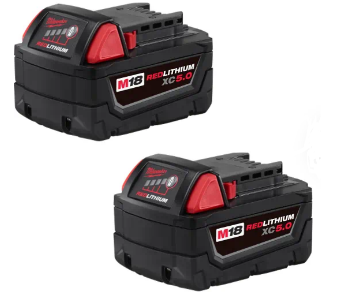 Milwaukee 48-11-1852 Package of 2 M18 REDLITHIUM XC5.0 Extended Capacity 18 Volt 5.0 AmpHour Lithium-Ion Rechargeable Batteries