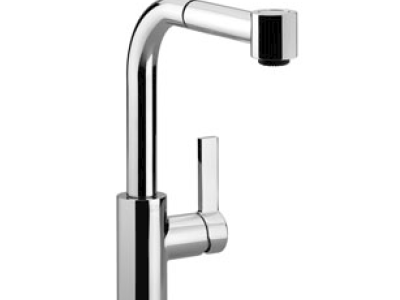 Particular care was taken in its design to ensure that the everyday sequences of movement are ergonomic. For example, a retractable spray head is integrated in the spout of the fitting, which comfortably reaches every area of the sink unit. Also, if you gently press the perfectly integrated control button, the spray changes from normal aerator flow to a more powerful spray jet.
