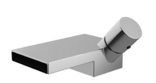 The striking thing about Deque is contrast: firstly between the gentle path of the water and the severe shape of the fitting, and secondly between the emphatically flat spout and the cylindrical control elements, a discontinuity of form that is particularly evident in the single-lever mixer.