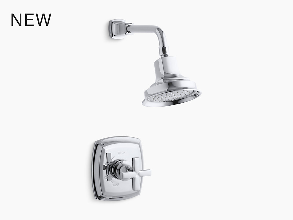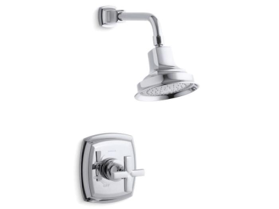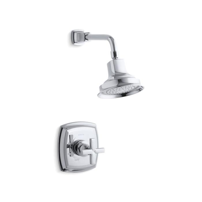 Kohler® Shower Valve Trim, Margaux® Rite-Temp®, 2.5 gpm Shower Flow Rate, 1 Handles, Metal Cross, 6-1/2 in W x 4-7/16 in D x 7-3/16 in H Trim, Pressure Balanced Valve/Cartridge, Hand Shower Yes/No: No, Spray Pattern: Rain, 1 Spray Functions, Bath/Deck Mount, Brass, Polished Chrome