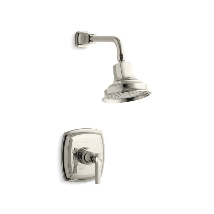 Kohler® Shower Valve Trim, Margaux® Rite-Temp®, 2.5 gpm Shower Flow Rate, 1 Handles, Metal Lever, 6-1/2 in W x 4-7/16 in D x 7-3/16 in H Trim, Pressure Balanced Valve/Cartridge, Hand Shower Yes/No: No, Spray Pattern: Rain, 1 Spray Functions, Wall Mount, Brass, Vibrant® Polished Nickel