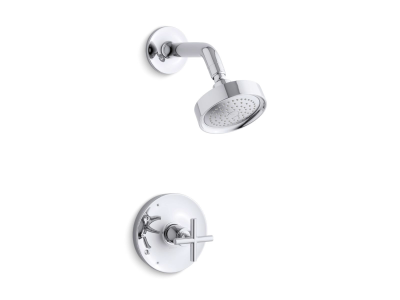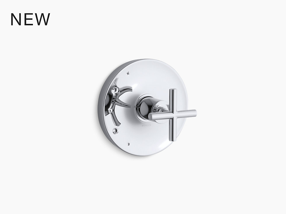 Purist® faucets and accessories combine simple, architectural forms with sensual design lines. Featuring this modern, minimalist style, the Purist® shower valve trim creates a sophisticated, unified look in your shower with a cross handle and showerhead. Pair this trim with a Rite-Temp® pressure-balancing valve, which maintains your desired water temperature during pressure fluctuations.