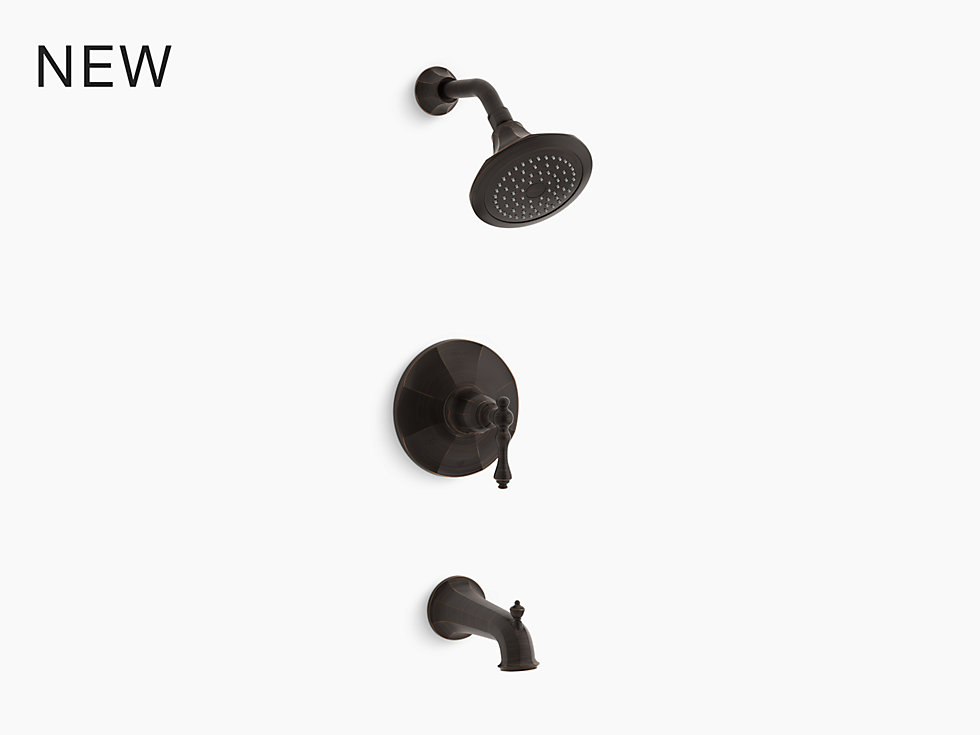 Gracious and inviting, Kelston evokes the grandeur of traditional design while delivering outstanding performance. This Kelston bath and shower valve trim includes a showerhead, bath spout, and a single lever handle with faceted faceplate. Pair this trim with a Rite-Temp pressure-balancing valve, which maintains your desired water temperature during pressure fluctuations.