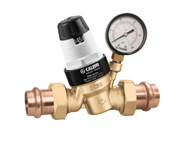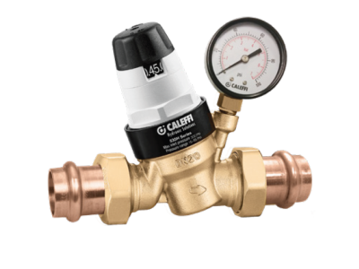 Caleffi 535651HA PresCal 3/4 inch Press Union Lead Free Brass Body Pressure Reducing Valve with Gauge