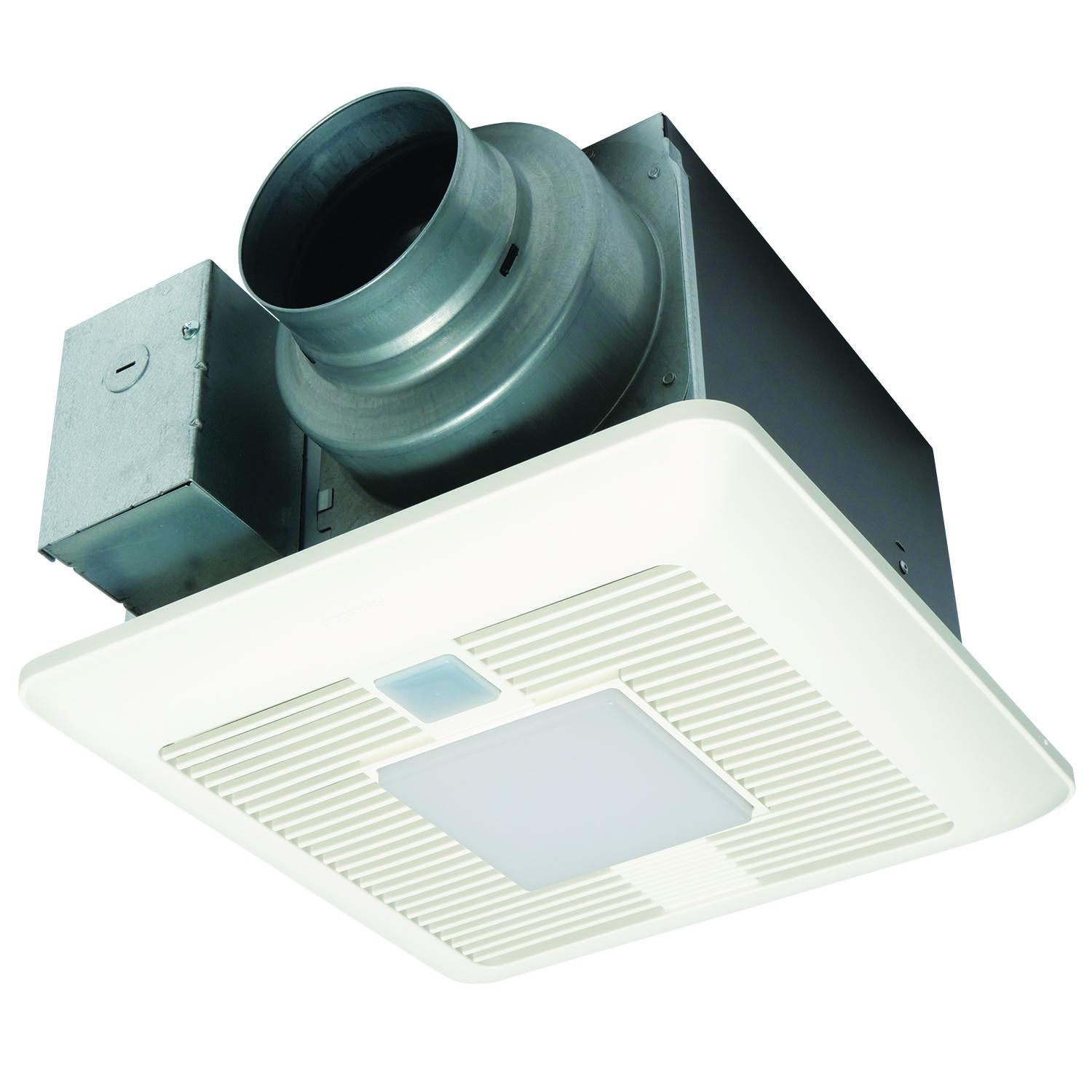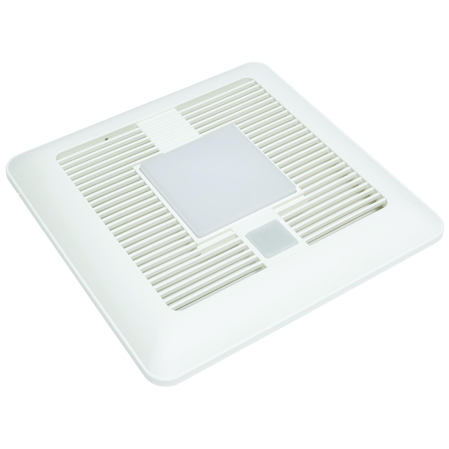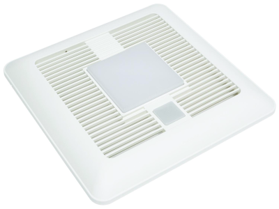 Panasonic WhisperSense® DC™ Ventilation Fan/Light, Round Duct Square Grille, 120 V AC, 0.07/0.11/0.12/0.18/0.19/0.26 A, 10 W Lamp, 50000 hr Average Life, Warm White Light, 3000 K Color Temperature, 90 CRI, Ceiling Mounting, Zinc Aluminum Magnesium Housing Material, 10-1/4 in L x 10-1/4 in W x 7-3/8 in H Dimensions