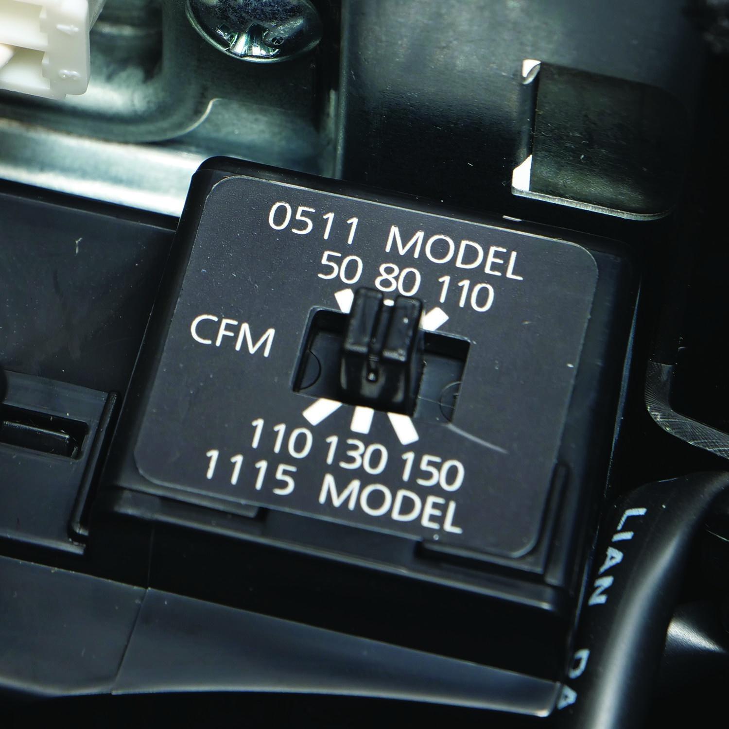WhisperSense® DC™ precision spot ventilation fan/LED light with built-in dual sensor technology (motion and moisture) for automatic moisture and odor control. Features Pick-A-Flow™ speed selector switch to select required airflow (50-80-110 cfm) and ECM motor with SmartFlow™ technology for optimum performance. Can be used to comply with the latest codes and standards.