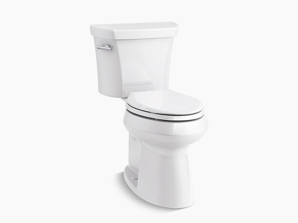 With its clean, simple design and efficient performance, this KOHLER® Highline water-conserving toilet combines both style and function. The two-piece elongated toilet features a convenient chair-like height and elongated bowl for comfort, as well as a concealed trapway for a sleek look and easy cleaning. An innovative 1.28-gallon flush setting provides significant water savings of up to 16,500 gallons per year, compared to an old 3.5-gallon toilet, without sacrificing flushing power.