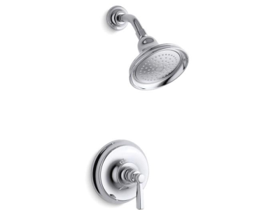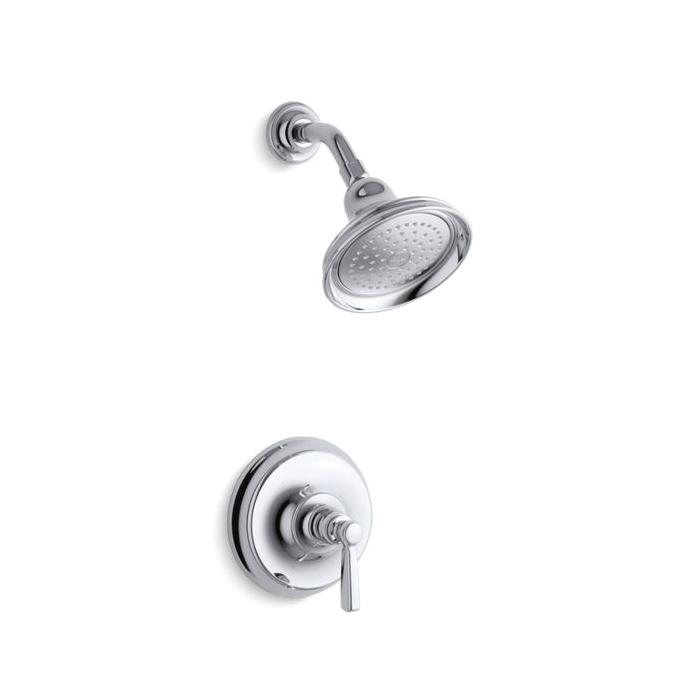 Kohler® Shower Valve Trim, Bancroft® Rite-Temp®, 2.5 gpm Shower Flow Rate, 1 Handles, Metal Lever, 6-3/8 in Dia x 4-3/8 in D Trim, Pressure Balanced Valve/Cartridge, Hand Shower Yes/No: No, Spray Pattern: Rain, Wall Mount, Brass, Polished Chrome