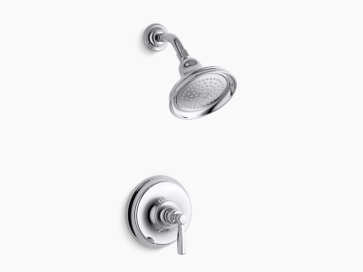 Inspired by early 1900s American design, Bancroft® faucets combine vintage style with durable construction. This shower trim includes a showerhead with Katalyst™ air-induction spray. By infusing two liters of air per minute, Katalyst™ delivers a powerful, voluptuous spray that clings to the body with larger, fuller water drops. Pair this trim with a Rite-Temp® pressure-balancing valve, which maintains your desired water temperature during pressure fluctuations.