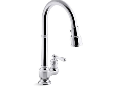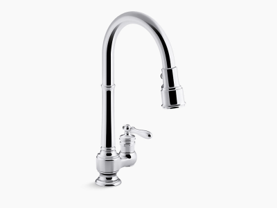 The KOHLER® Artifacts faucet collection brings you classic designs reimagined in fresh ways for various task areas of the kitchen. This Artifacts deck-mount kitchen sink faucet displays vintage style with its high-arch spout and unique handle position, which eliminates interference with backsplashes. The three-function pull-down sprayhead has you covered for a range of tasks: BerrySoft spray for food prep; an aerated stream for filling pots; and Sweep spray for cleaning.