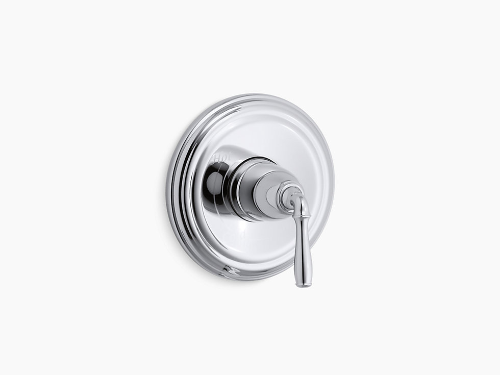 Designed to capture the essence of a bygone era, Devonshire faucets and accessories bring a versatile, traditional style to the bathroom. This bath/shower valve trim includes a faceplate with metal lever handle. Pair this trim with a Rite-Temp® pressure-balancing valve, which maintains your desired water temperature during pressure fluctuations.