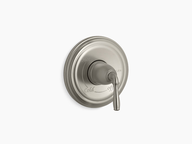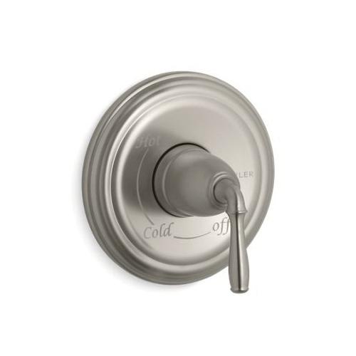 Kohler® Valve Trim, Devonshire® Rite-Temp®, 1 Handles, Metal Lever, 7 in Dia x 4-5/16 in D Trim, Hand Shower Yes/No: No, Wall Mount, Brass, Vibrant® Brushed Nickel
