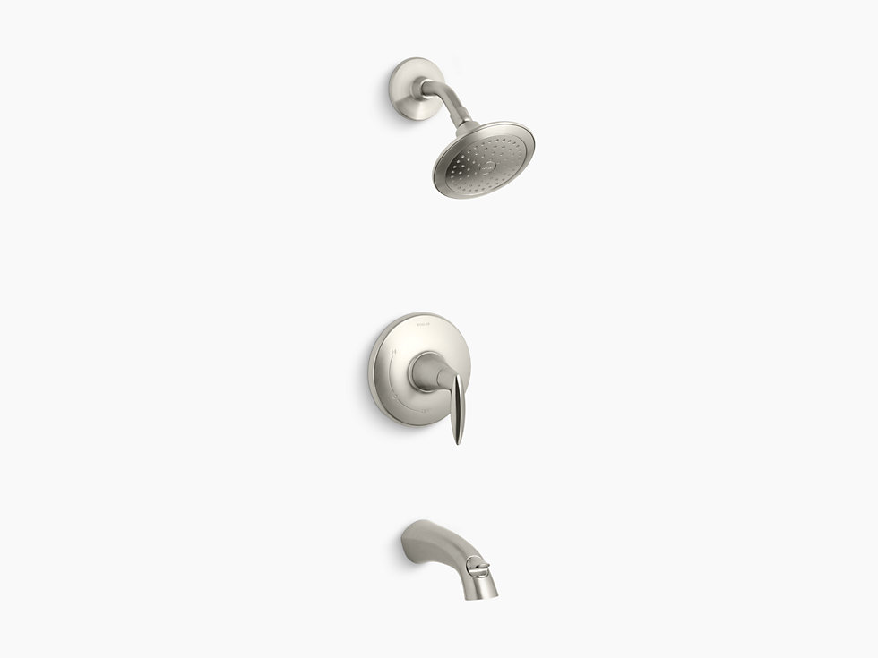 Kohler® Bath/Shower Valve Trim, Alteo® Rite-Temp®, 2.5 gpm Shower Flow Rate, NPT Diverter Spout, 6-1/2 in Spout Reach, 1 Handles, Metal Lever, 6-7/16 in Dia x 4-9/16 in D Trim, Hand Shower Yes/No: No, 1 Spray Functions, 80 psi, Wall Mount, Stainless Steel, Vibrant® Brushed Nickel