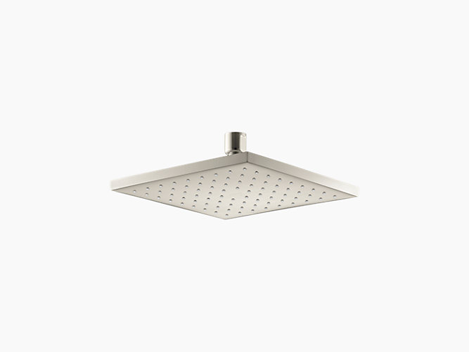 Kohler® Raincan Shower Head, Contemporary, 2.5 gpm, 1/2 in NPT Connection, Squared Shape, Spray Pattern: Rain, Ceiling Mounting, 8 in Overall Length, 8 in Overall Width, 2-3/4 in Overall Height, Brass, Vibrant® Polished Nickel