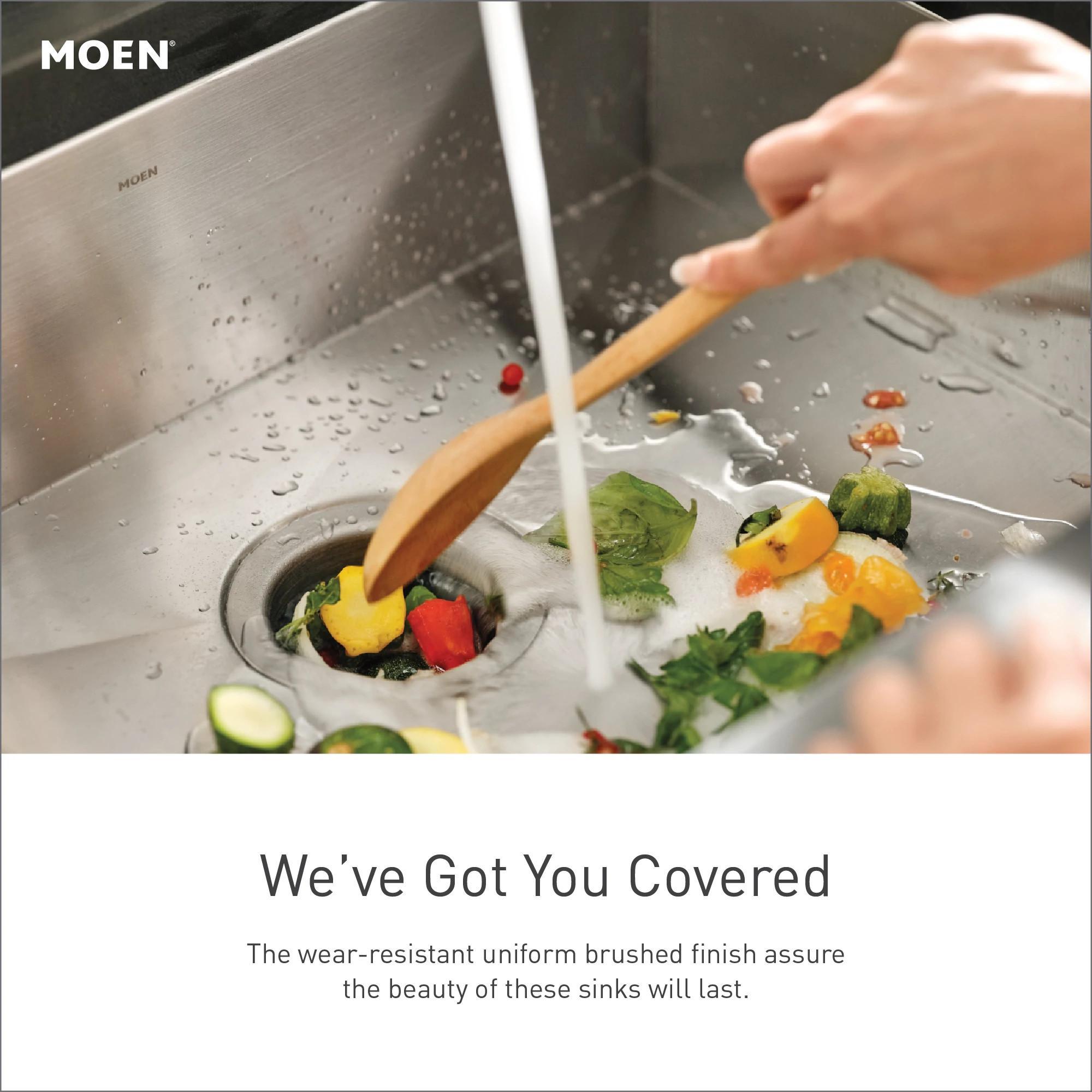 Moen® G18180 1800 Kitchen Sink, Brushed, Rectangle Shape, 29 in L x 16 in W Bowl x 8-1/2 in D Bowl, 18 in W x 10.63 in D x 31.25 in H, Undermount Mounting, 18 ga Stainless Steel