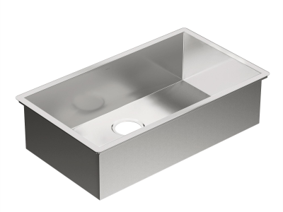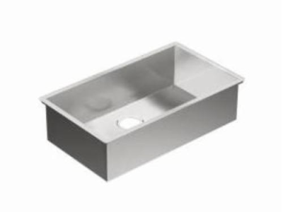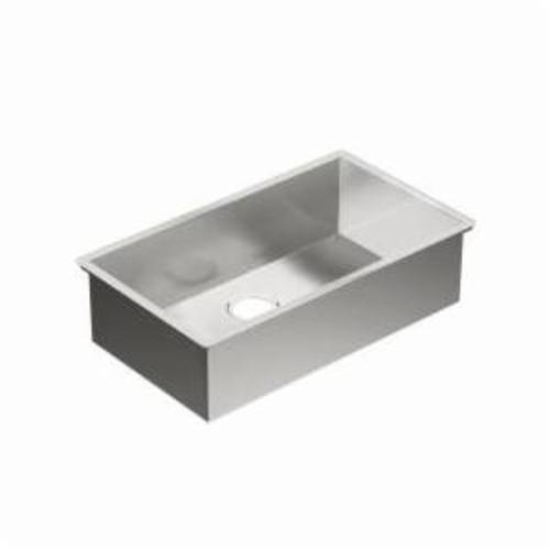 Moen®, G18180, Kitchen Sink, Series: 1800, Rectangle Shape, 29 in Bowl Length, 16 in Bowl Width, 8-1/2 in Bowl Depth, 3-1/2 in Drain Opening, 1 Bowls, 18 in W x 10.63 in D x 31.25 in H Overall, Undermount Mounting, 18 ga Stainless Steel, Brushed, Import