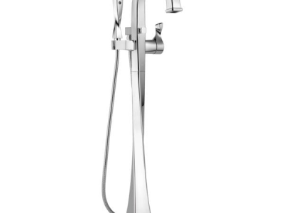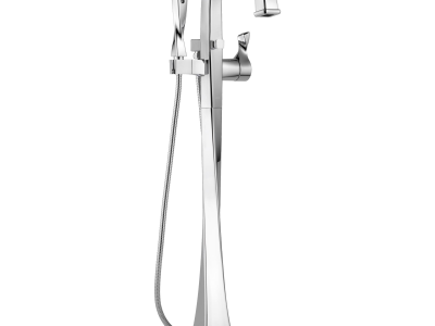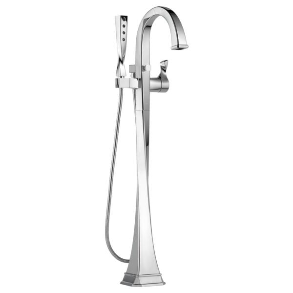 Brizo® Tub Filler Trim, Free Standing, Virage® Collection, 2 gpm Flow Rate, Diverter Spout, 9-3/8 in Spout Reach, 34-9/16 in Spout Height, 60 to 82 in Hose, Brass Lever Handle, 1 Handle, 1 Faucet Hole, 1/2 in Connection, 1 Spray Function, Hand Shower: Yes, Ceramic Disc, 8-5/8 in W x 40-1/2 in H Dimensions, Solid Brass, Polished Chrome, Domestic