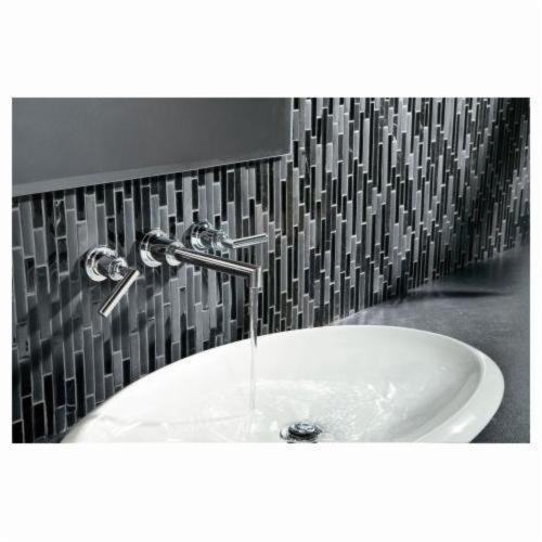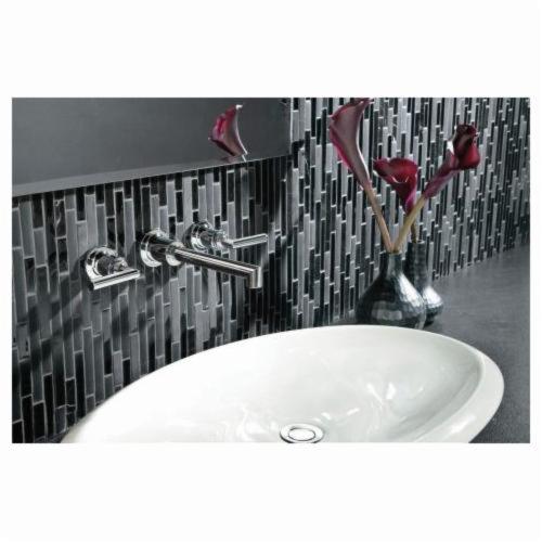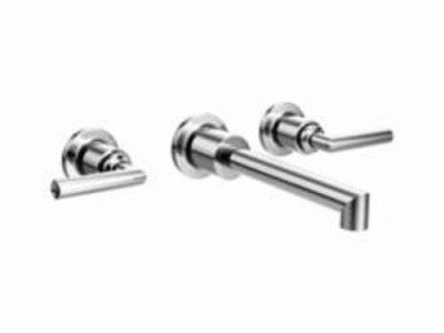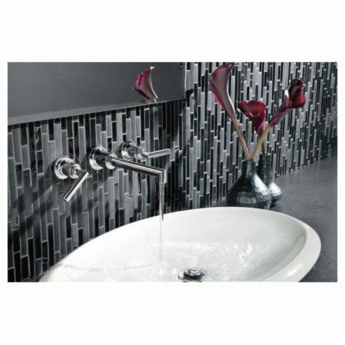 Moen® Widespread Bathroom Faucet, Series: TS43003, Arris™ Collection, 1.5 gpm Flow Rate, 8 in Center Distance, Fixed Spout, 8 in Spout Height, Lever Handle, 2 Handles, 3 Faucet Holes, 1/2 in Connection, IPS Connection, Function: Traditional, Wall Mounting, 1224 Ceramic Disc Cartridge, 9.25 in W x 13.62 in D x 3.12 in H Dimensions, Metal, Polished Chrome, Import