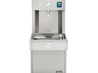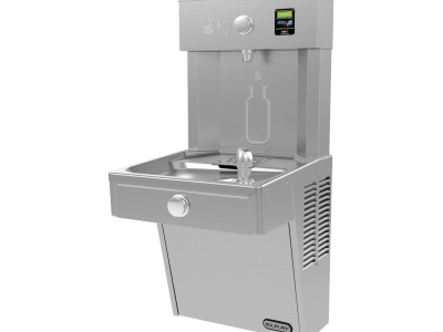 Unit shall include electric water cooler with bottle filling station. LVRC8WS shall deliver 8 gph of 50 deg F drinking water at 90 deg F ambient and 80 deg F inlet water.LVRCDWS shall deliver non-chilled drinking water. Units shall be stainless steel construction and include vandal-resistant pushbutton activation. Cooler shall include vandal-resistant bubbler. Bottle filling unit shall include an automatic 20 sec shut-off timer. Shall include Green Ticker™ displaying count ofplastic bottles saved from waste. Bottle filler shall provide 1.1 to 1.5 gpm flow rate with laminar flow to minimize splashing. Shall include the WaterSentry® Plus 3000 gal capacity filter, certified to NSF/ANSI 42 and 53, with visual monitor to indicate when replacement is necessary. Unit shall meet ADA guidelines. Unit shall be lead free design which is certified to NSF/ANSI 61 and 372 and meets federal and state low-lead requirements. Unit shall be certified to UL399 and CAN/CSA 22.2 No. 120.