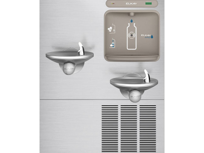 The Elkay® EZH2O® Bottle Filling Station delivers a clean quick water bottle fill and enhances sustainability by minimizing our dependency on disposable plastic bottles. Complete water station including bi-level refrigerated fountain with integral bottle filler. Sanitary no-touch sensor activation with automatic 20 sec shut-off timer.