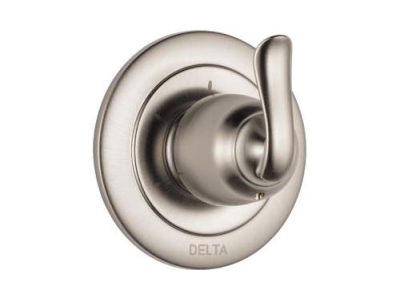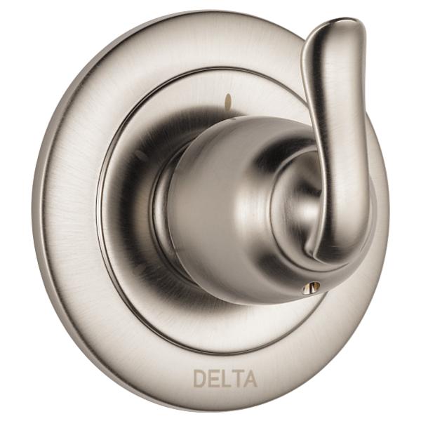 DELTA® Diverter Trim, 2-Port 3-Setting, Linden™, Metal Lever Handle, 4-1/2 in Dia Trim, Hand Shower: No, Wall Mounting, For Use With: R11000 Series Ceramic Cartridge Rough-In Valve, Zinc, Brilliance® Stainless Steel, Domestic