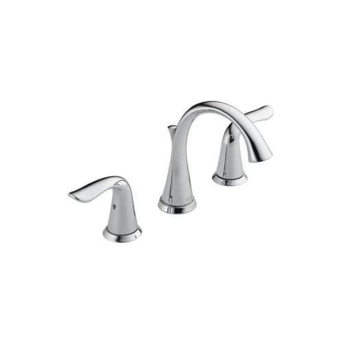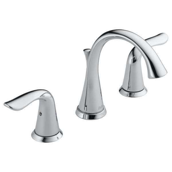 DELTA® Widespread Lavatory Faucet, Lahara® Collection, 1.5 gpm Flow Rate, 4 to 16 in Center Distance, Rigid Spout, 5 in Spout Reach, 3-5/8 in Spout Height, Lever Handle, 2 Handles, Pop-Up Drain, 3 Faucet Holes, 3/8 in Connection, Compression Connection, 2-1/4 in Maximum Deck Thickness, Deck Mounting, DIAMOND™ Seal Valve, 5-7/8 in H Dimensions, Brass, Polished Chrome, Commercial Commercial/Residential