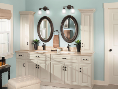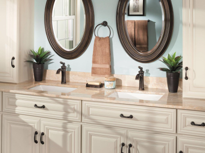 With intricate architectural features that transcend time, Brandford faucets and accessories give any bath a polished, traditional look. Classic lever handles, a tapered spout and globe finial give this collection universal appeal.