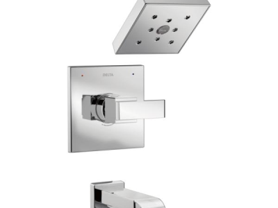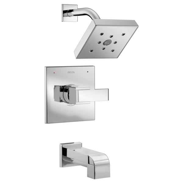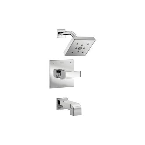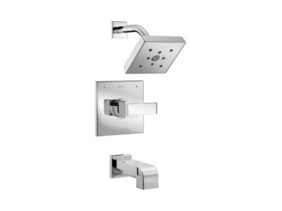 DELTA® Tub and Shower Trim, Series: Monitor® 14, Ara® Collection, 1.75 gpm Shower Flow Rate, Pull-Up Diverter Spout, 6-1/4 in Spout Reach, 1 Handles, Metal Lever Handle, 6-1/2 in H Trim, 1222 Pressure Balanced, Hand Shower: No, Spray Pattern: H2Okinetic®, 1 Spray Functions, Wall Mounting, For Use With: For use with MultiChoice® Universal Rough-In Valve Body(R10000 Series), Plastic, Polished Chrome, Domestic