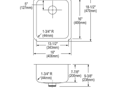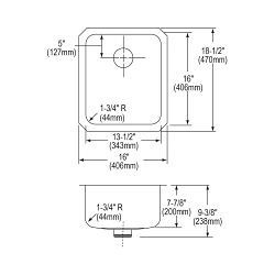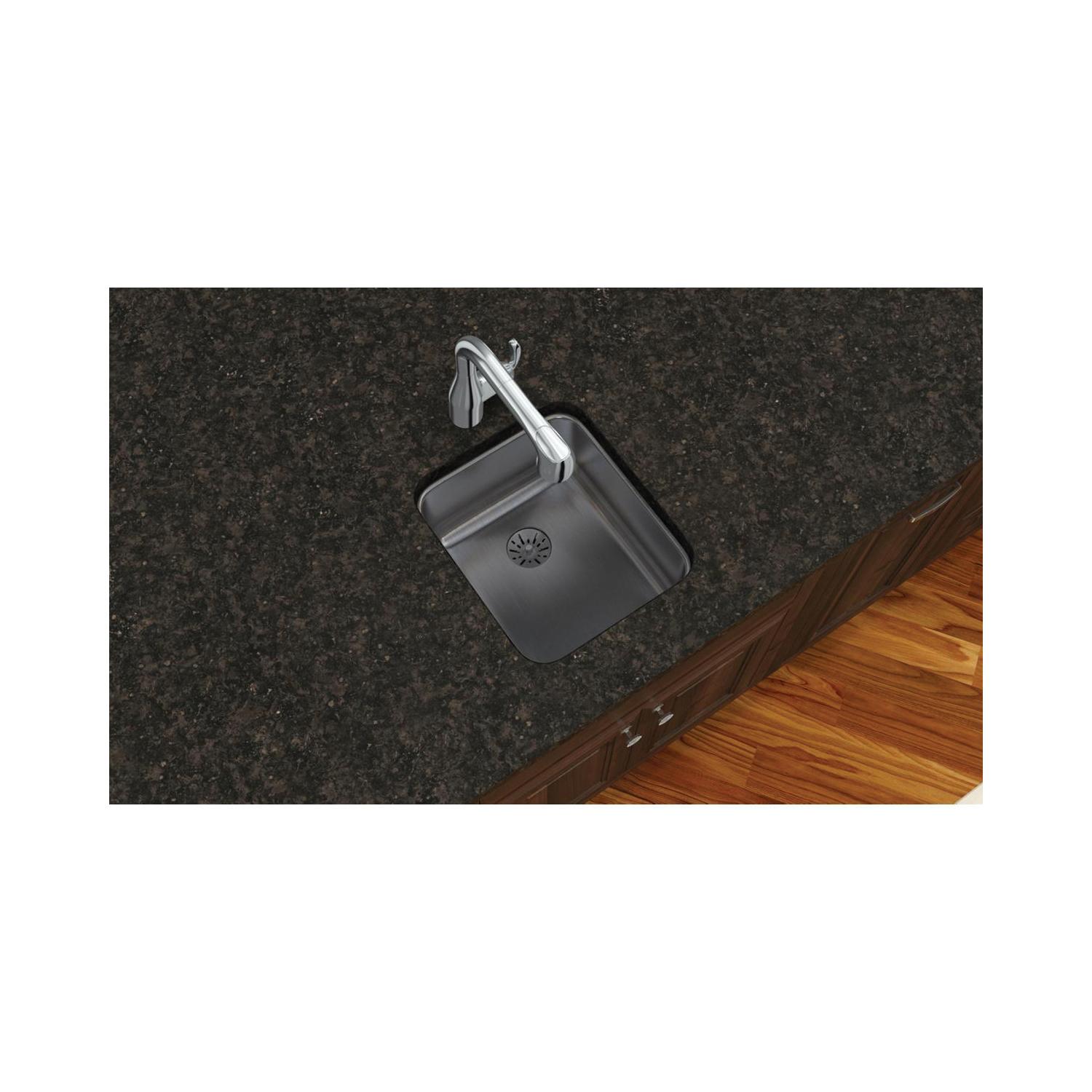 Elkay®, ELUH1316PD, Kitchen Sink, Lustertone™ Classic Collection, 13-1/2 in Bowl Length, 16 in Bowl Width, 7-7/8 in Bowl Depth, 3-3/8 in Drain Opening, 1 Bowls, 16 in L x 18-1/2 in W x 7-7/8 in H Overall, Undermount Mounting, 18 ga 304 Stainless Steel