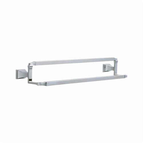 DELTA® Towel Bar, Double, Dryden™ Collection, 24 in Bar Length, 26-1/8 in Overall Length, 6-1/8 in Overall Depth, 4-7/32 in Overall Height, 1-3/4 in Base, Brass, Polished Chrome, Import
