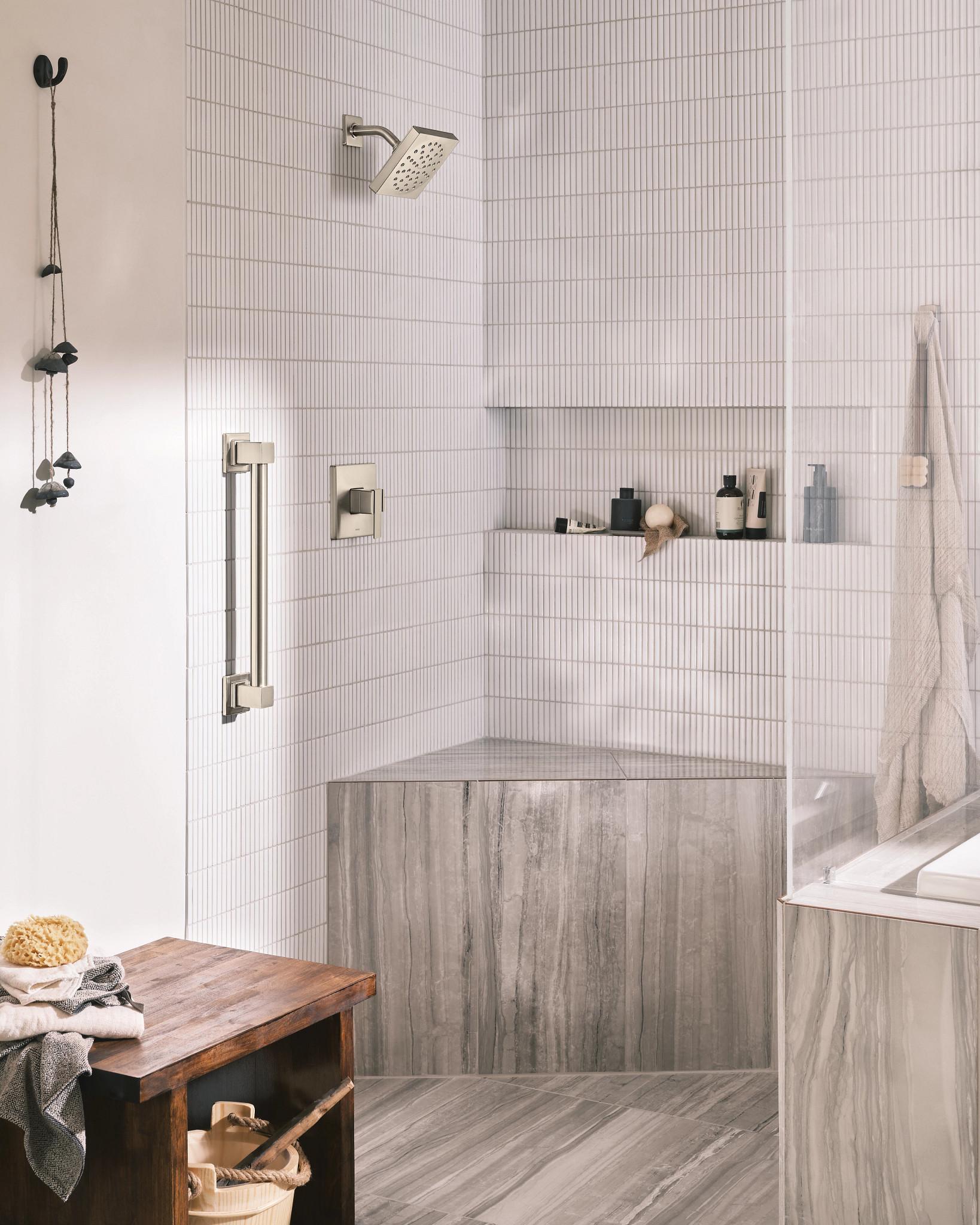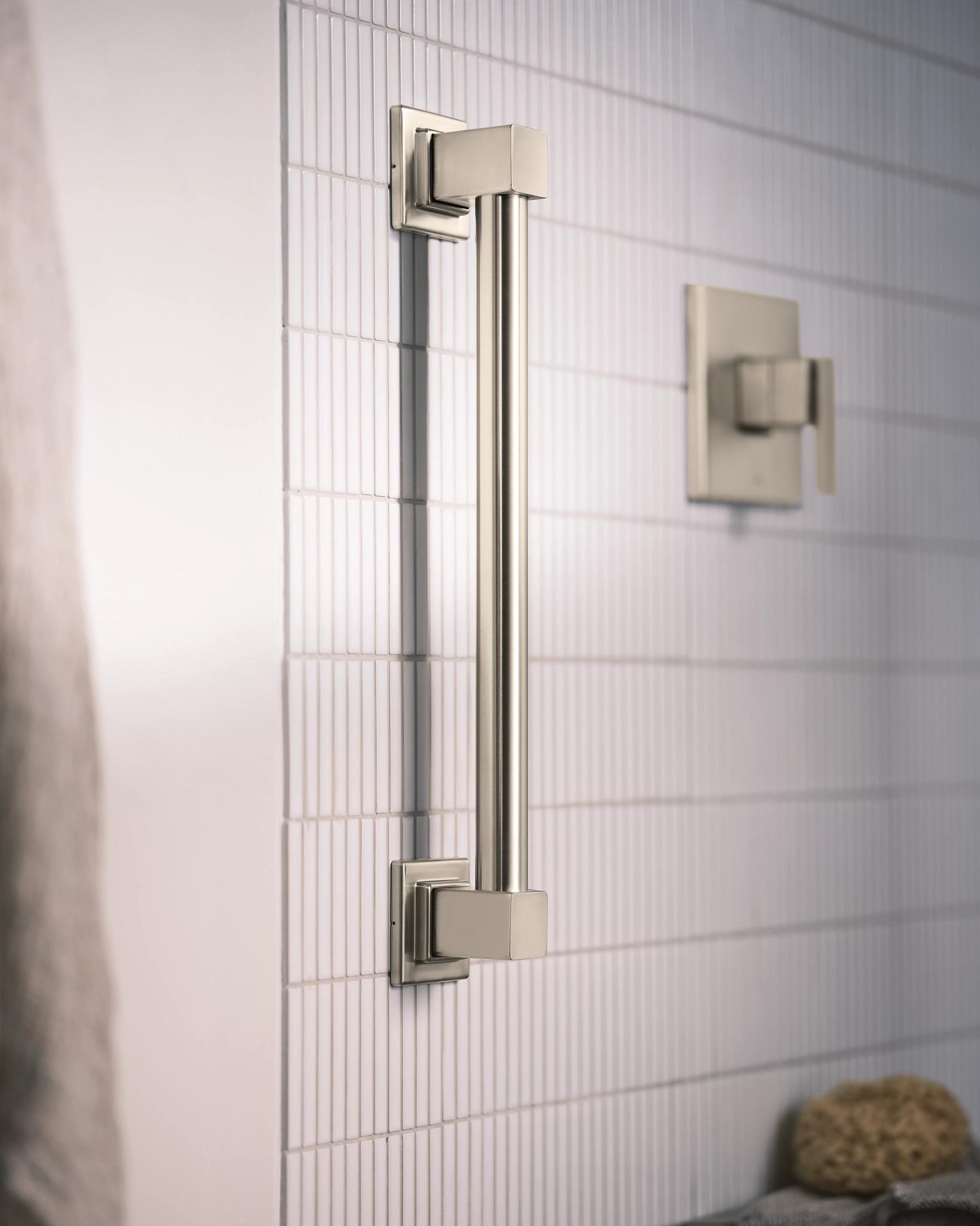 Moen®, YG8818BN, Grab Bar, Designer, 90 Degree™ Collection, 1-1/4 in Diameter, 18 in Length, 2.94 in Width, 2.96 in Height, 500 lb Load, Stainless, Brushed Nickel, Import