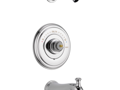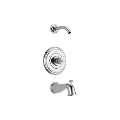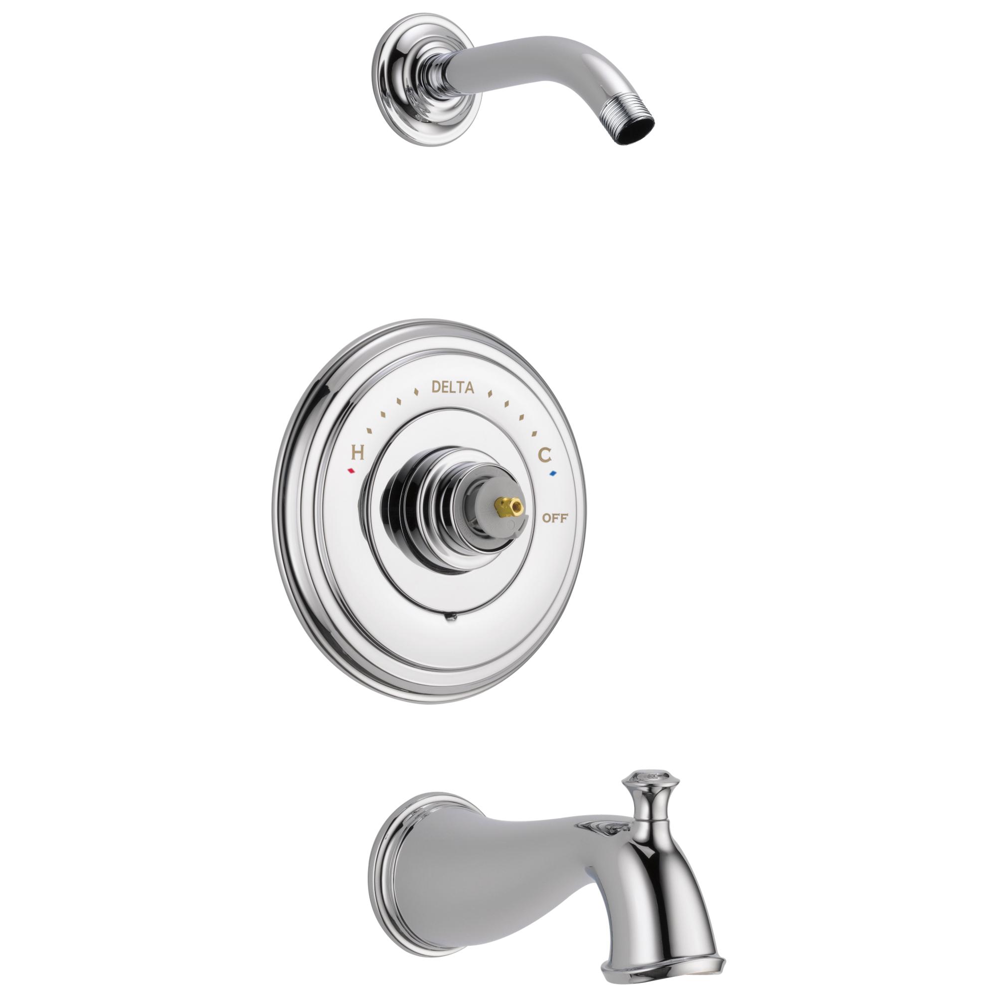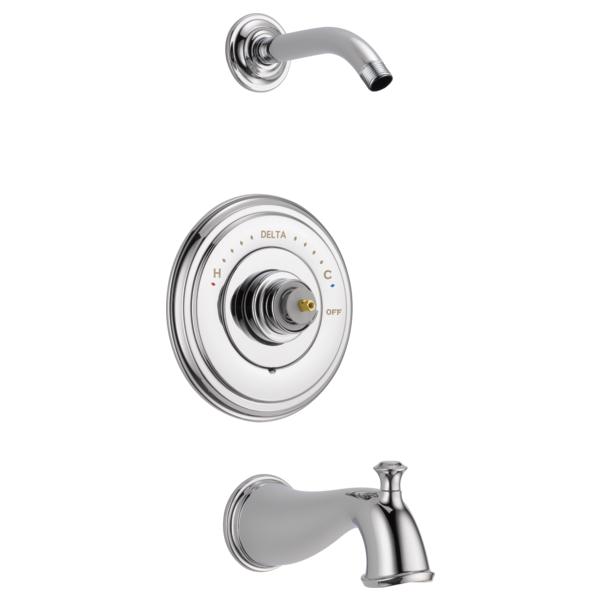 DELTA® Tub and Shower Trim, Series: Monitor® 14, Cassidy™ Collection, Pull-Up Diverter Spout, 6-1/2 in Spout Reach, 7 in Dia Trim, 1222 Pressure Balanced, Hand Shower: No, 1 Spray Functions, Wall Mounting, Solid Brass, Polished Chrome